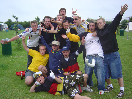 Tja Auch im Jahre 2007 beschloss die 109er Actioncrew wieder auswärts der gewohnten BüWi-Stadionatmosphäre zu bierolympionisieren. So fuhren fast 20 freudige Menschen für ein Wochenende zum Herr Goldständer nach Holland. Das Wetter war holländisch wechselhaft, was aber den Bierkonsum keineswegs negativ beeinflusste. Bierolympisch war dieses Wochenende mal wieder was ganz feines und geradezu außergewöhnliches. Für viele, auch gerade für Hollandneulinge, war es mal wieder was ganz besonderes auf holländischem Grase zu spielen. So wurde direkt am Donnerstag, dem 1. Camptag, eine interne Bierolympiade angestimmt. Alsbald versammelten sich wieder Mitglieder aus andren Camps am Spielfeldrand und so fanden wir bereits am ersten Camptag unsere Gegner dieses Trainingscamps. Das Team Vera aus Aachen fand direkt gefallen an unserem illustren Spiele und so fanden täglich Duelle zwischen uns statt. Besonders außergewöhnlich hierbei waren die ausgefallenen Kriegsbemalungen beider Teams. Sei es der Taucheranzug vom "Taucher", ein Clownskostüm oder einfach die Lache vom Lörres. Unser Team kleidete sich wieder stilvoll deutsch und überzeugte durch ausgeklügelte Irritationshilfen, wie zum Beispiel den "dritten Ficker" vom Käff! So kam was kommen musste: Das erste Duell von den beiden Teams auf 3 Siegpunkte. Team Vera noch fast unerfahren spielte sich aber souverän zu einem 2-0 Vorsprung. Der Nationalkader Bberg sah sich schon fast von einem Bierolympiadenneuling besiegt. Doch genau an eben dieser Stelle stellt sich ja nunmal die wahre Stärke der Spieler unserer Mannschaft heraus. Unter enormem Leistungsdruck gewann man schließlich Satz für Satz und konnte so doch noch mit einem knappen 3-2 dieses Duell gewinnen. Unbedingt gesondert zu erwähnen ist jedoch der sportliche Spielgeist der Aachener. Die Jungs feierten am Spielfeldrand als ob bei Lidl der Dosenpfand aufs Billigbier aufgehoben wurde. Einfach einzigartig geil. In diesem Sinne kann ich auch für mich sagen, dass ich, allein wegen der Partyactions von den Menschen, die 2 verlohrenen Sätze dennoch genossen hab, weil diese Menschen einfach dermaßen gefeiert haben. In den folgenden Tagen fanden noch einige Duelle auf meistens 2 Siegpunkte statt, die aber meistens recht klar von uns gewonnen wurden. Lediglich das letzte Duell, am Samstag, ging nochmal recht knapp mit einem 2-1 aus. Aber Jungs aus Aachen: Et hat echt Spass gemacht und wir fordern eine Revanche und Wiederaufrollung der Spiele. Ebenfalls fanden noch am Samstage ein paar interessante One-On-Ones statt. Peter überzeugte durch hohe Trefferquote, eher mäßiges Trinktempo und auch fast alle gewonnenen One-On-Ones. Der Globalplayer Andek konnte in den One-On-Ones gegen Nico und mich nicht gewinnend vom Platz treten. Ebenso wie ich in dem Spiel gegen den großen schweren Lukas. Eine ganze Reihe von One-One-Ones gegen das Team Vera gingen auch größenteils zum Nachteil des Teams aus. Nach alkoholreichen und biervernichtenden Tage in Holland fuhr das gesamte Team am Sonntagmittag wieder Richtung Heimat. Ein paar Tage außergewöhnlichster Art haben mal wieder allen Spass gemacht. Leider konnte der Stammhundertneuner Boba nicht teilnehmen, weil er gerade erfolgreich an der Schule für außergewöhnliche Geilheit promovierte. Für alle Menschen mal wieder eine